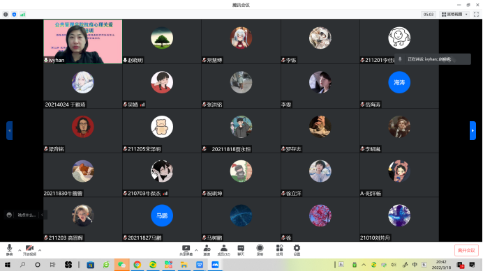 致辞中,韩小威院长介绍了本次系列讲座推出的背景,在当前全校上下齐心以防疫为第一要务、学校抗疫管控力度不断升级的情况下,为提升全校师生特殊时期心理应激状态的调节能力,为满足疫情不断变化以及学校长时间封闭可能造成的持续增长的心理关爱与支持需求,学院成立了以具有心理学专业背景教师为骨干、长期从事青少年心理关怀的社会工作专业师生为支撑的心理关爱志愿服务队,并在第一时间组织具有心理咨询与心理关爱服务经验的教师开展学校首轮抗疫心理关爱系列讲座。