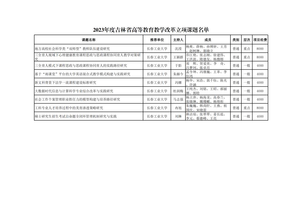 beat365中文官方网站-2023年度吉林省高等教育教学改革立项课题名单