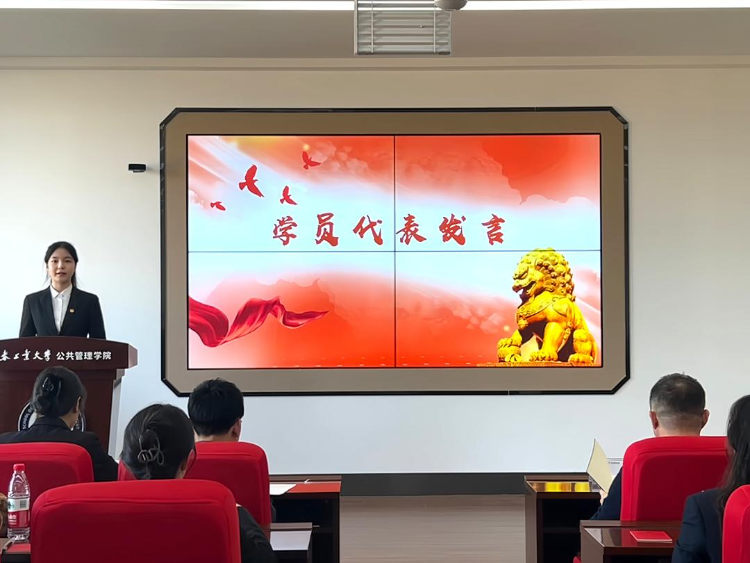 周佳慧同学代表本期积极分子上台发言,号召全体学员当以理想信念校准人生航向,以党章党纪铸就精神铠甲,端正入党动机,以严格的标准要求自己,早日加入组织,奉献青春力量。