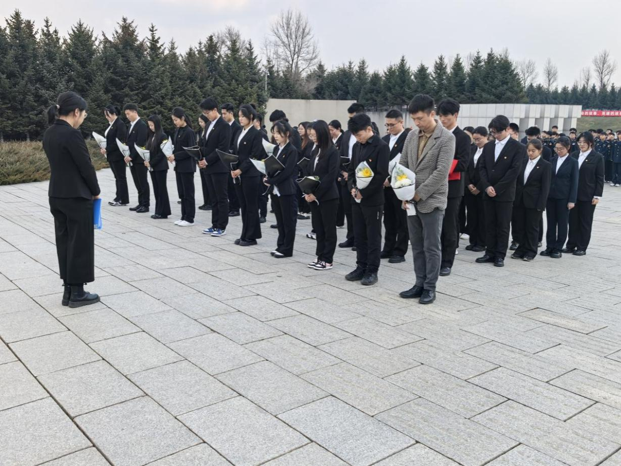 苍松翠柏掩映下的烈士陵园,肃穆而庄严。下午14时,祭扫仪式正式开始。全体师生整齐列队,肃立于革命烈士纪念碑前,手持素菊,默哀三分钟。无声的哀思中,先烈们为民族独立和人民解放抛头颅、洒热血的壮烈事迹仿佛重现眼前,令人肃然起敬。