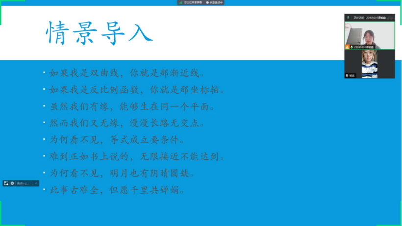 此次伴学我主要负责一位高中生的数学学科,了解到了该学生的优势和不足,通过学生的具体情况来进行教学,并且定期询问该生在学习上的难处,及时给予帮助。在伴学过程中,我向伴学对象梳理了冗杂的数学基础知识,希望借此机会可以对她接下来的数学学习阶段打下坚实的基础,同时我也重温了很多高中的知识点和难题,对于我和伴学对象来说,都是一场不小的收获。