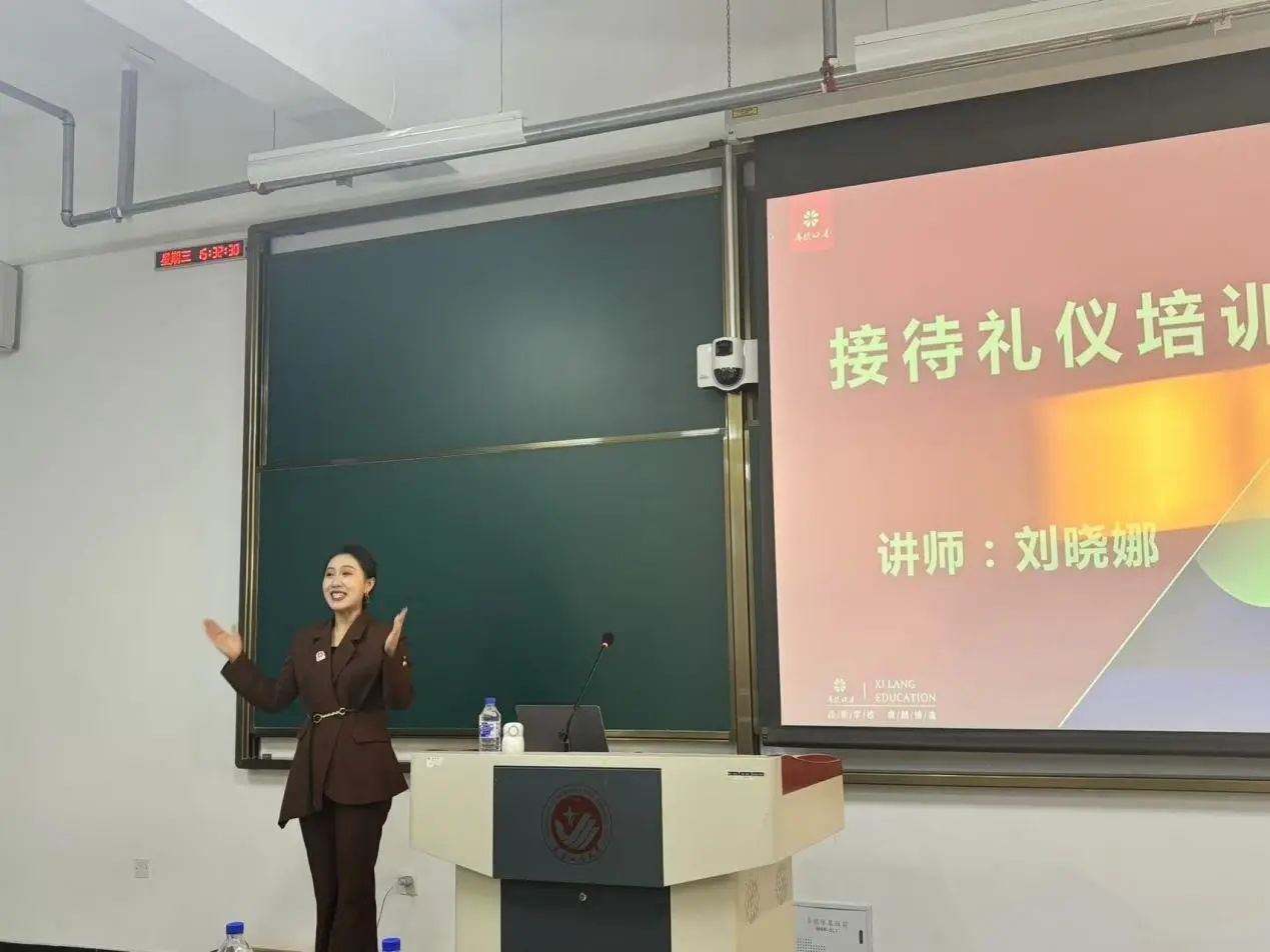 本网讯(学生通讯员 冷若宁)为了迎接即将到来的beat365中文官方网站30周年院庆,让团学组织工作人员和院庆活动志愿者,通过专业的指导和实践,掌握商务场合中的礼仪规范,提高志愿服务的质量,同时提升个人形象和气质,增强自信心和交往能力,12月4日在东区主楼101教室,学院邀请专业的商务礼仪培训老师,为大家进行了一场精彩的商务礼仪培训。