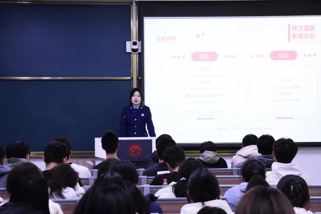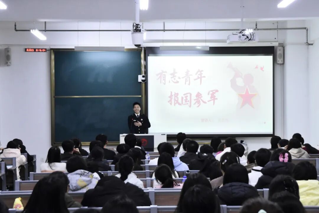 新闻网讯(通讯员 查思敏)为厚植青年学子爱国情怀、筑牢报国理想,鼓励优秀学子投身国防事业,同时展现我院学子昂扬向上的精神风貌,学院于10月23日晚在北湖东区主教学楼开展征兵宣讲及国旗护卫队纳新动员活动,此次活动聚焦内容宣讲、聚力榜样引领,点燃了同学们的激情。