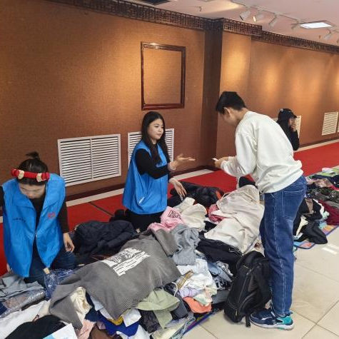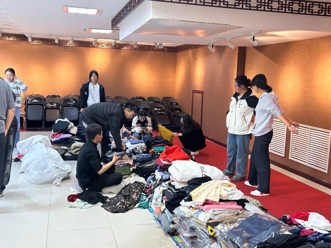 活动现场,我院志愿者们迅速投入工作,将前期募捐所得的衣物仔细分类、整齐陈列,方便参与活动的小朋友及家长挑选心仪物品。