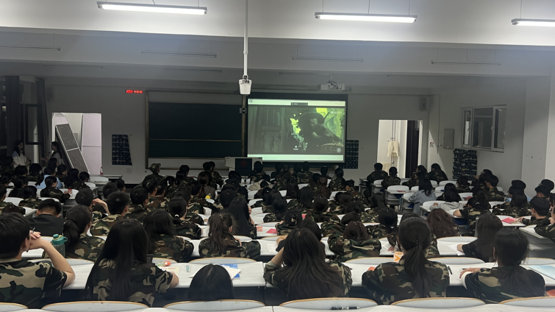 迷彩青春铸担当,红色光影忆忠魂。为深切缅怀抗战英烈,传承伟大抗战精神,9月25日晚,beat365中文官方网站于北湖东区艺术楼221教室组织25级全体新生共同观看红色影片《八佰》。以光影为媒介,带领同学们回溯历史烽烟,感悟铁血军魂,在沉浸式观影中深植爱国情怀,凝聚军训奋进力量。