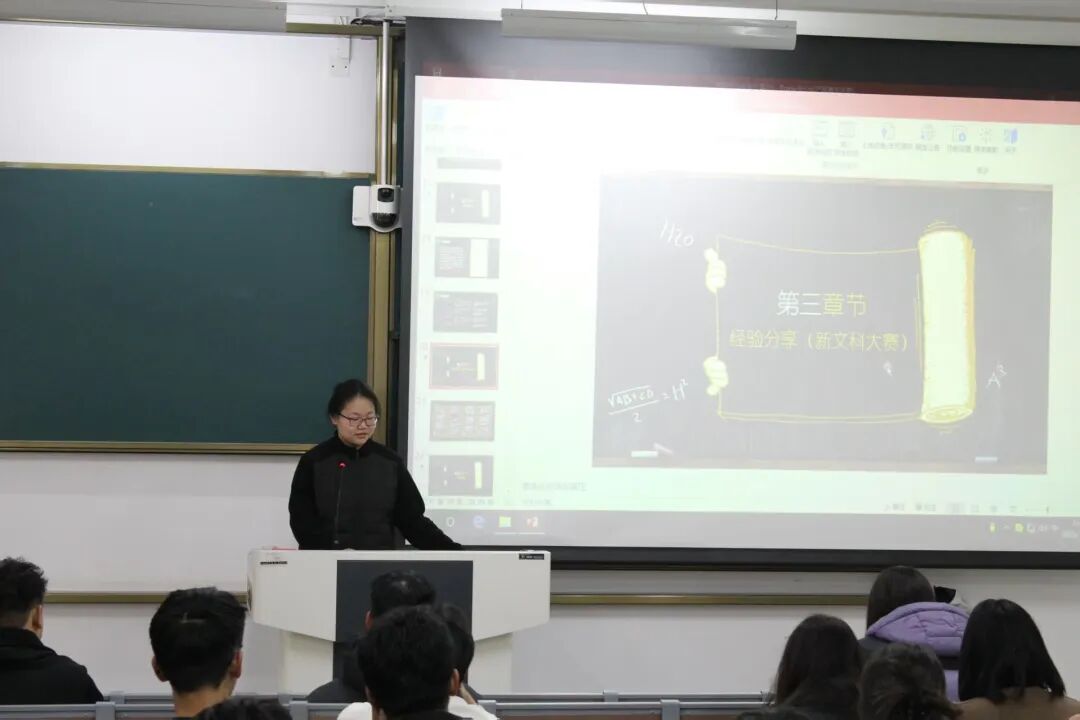 宣讲过程中,现场氛围热烈,新生们专注聆听、积极提问,学姐们逐一耐心解答,用真实经验化解新生顾虑,为大家理清了参加创新类大赛的思路与方向。同学们纷纷表示,学姐们的分享不仅让自己对创新类大赛有了更清晰的认知,更激发了主动探索、勇于尝试的热情。