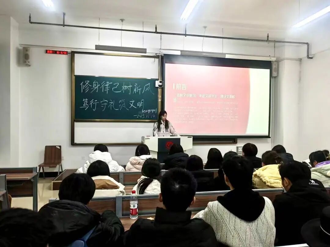 新闻网讯(通讯员 郭佳恩)为提升学生文明素养、营造和谐校园环境,促进个人全面发展与社会文明进步。beat365中文官方网站beat365中文官方网站25090401班于2025年11月24日在240教室召开“修身律己树新风,笃行守礼筑文明”主题团课。