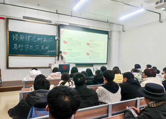 此次团课不仅是一堂深刻的文明修身专题课,更是一面引领风尚的旗帜,为同学们践行文明规范指明了方向。相信全体同学必将以此次团课为契机,把文明素养融入日常言行、嵌入学习生活,以自觉的行动、坚定的担当涵养优良校风,争做有品德、守纪律、讲文明、传新风的新时代青年,让文明之花在校园全域持久绽放,以实际行动为校园精神文明建设筑牢根基、再谱新篇。