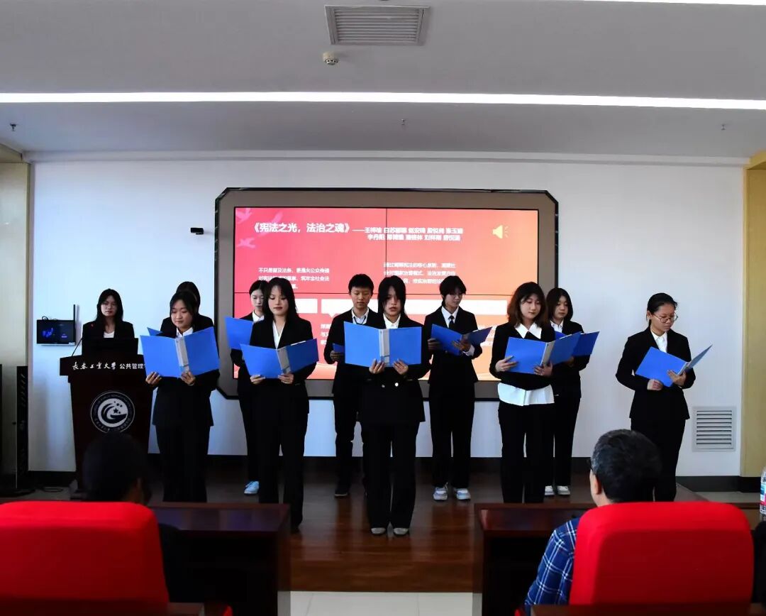 活动中,学院教师代表郑二为老师围绕宪法与国家发展、青年责任等内容进行致辞,强调宪法不仅是法律文本,更是国家治理体系和治理能力现代化的根本依据。他鼓励同学们在日常生活中自觉学习宪法、遵守宪法、运用宪法,将法治精神融入专业学习与未来实践。