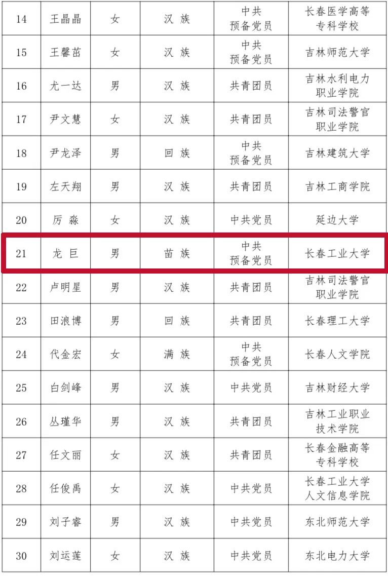 2022吉林省“优秀大学生”寻访活动结果