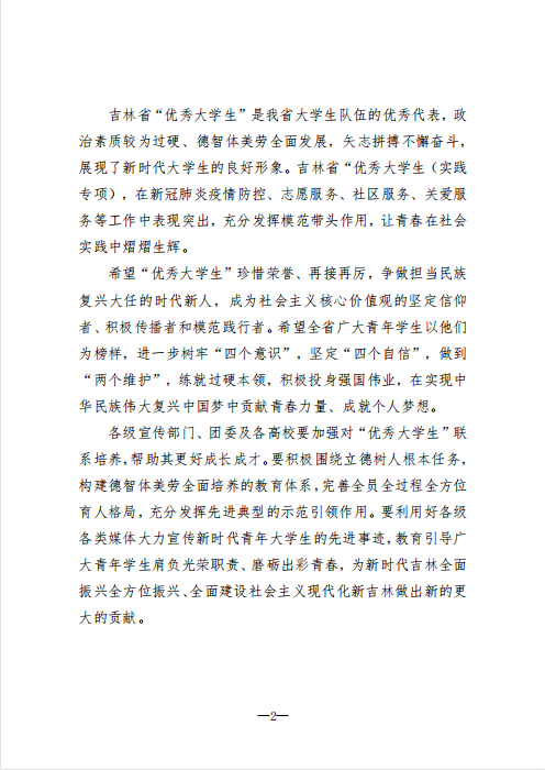 2022年吉林省“优秀大学生”介绍