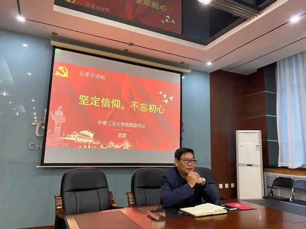 孟雷书记的讲授主要从“共产党员应有坚定的理想信念”与“制度优势是党和国家的最大优势”两个方面展开。