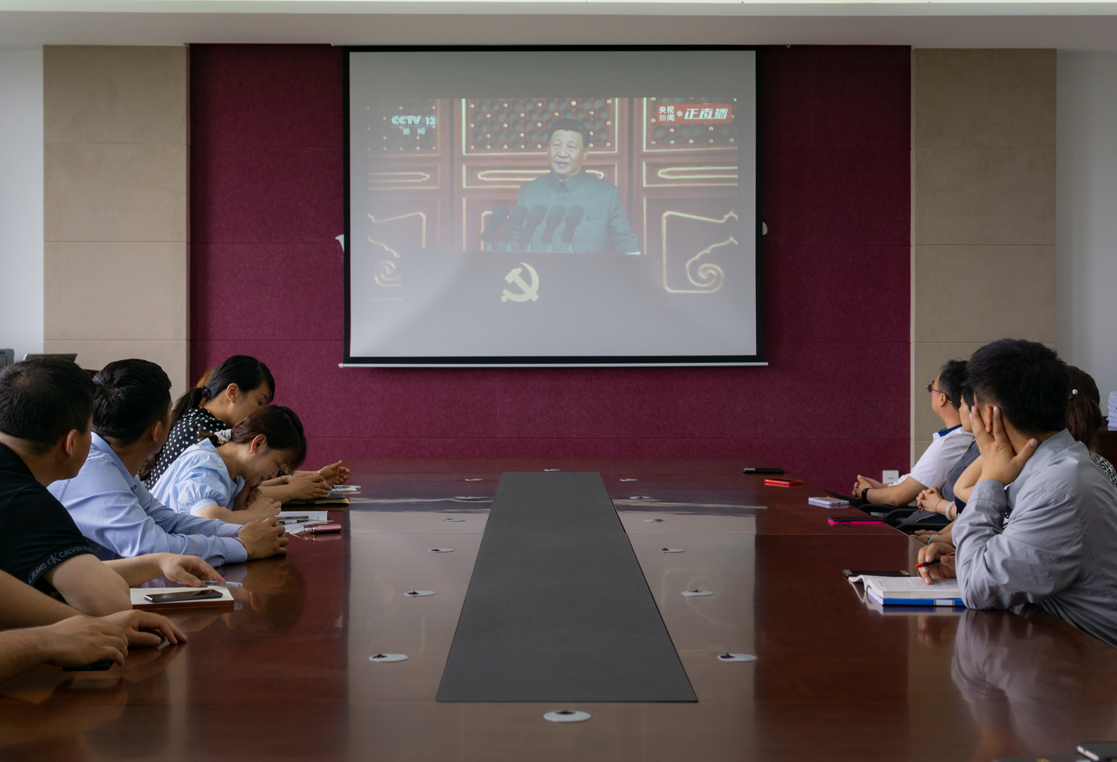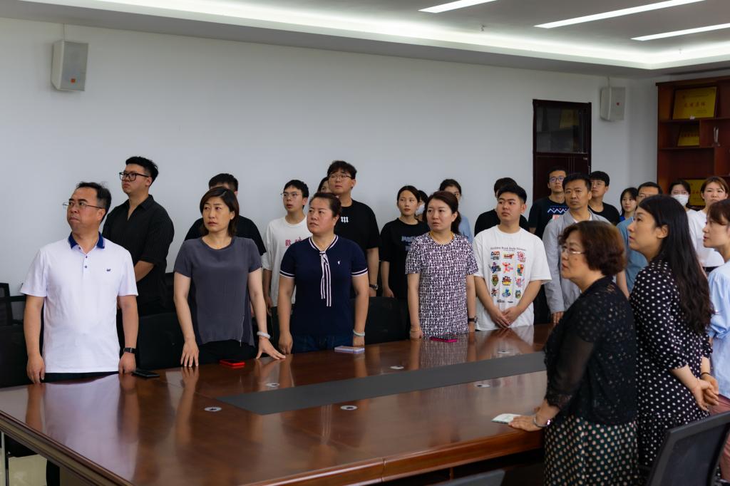 学院党政领导班子、党政办公室、学生工作办公室成员、部分教师代表和部分党员学生干部在北湖东区主楼401会议室集中观看现场直播。