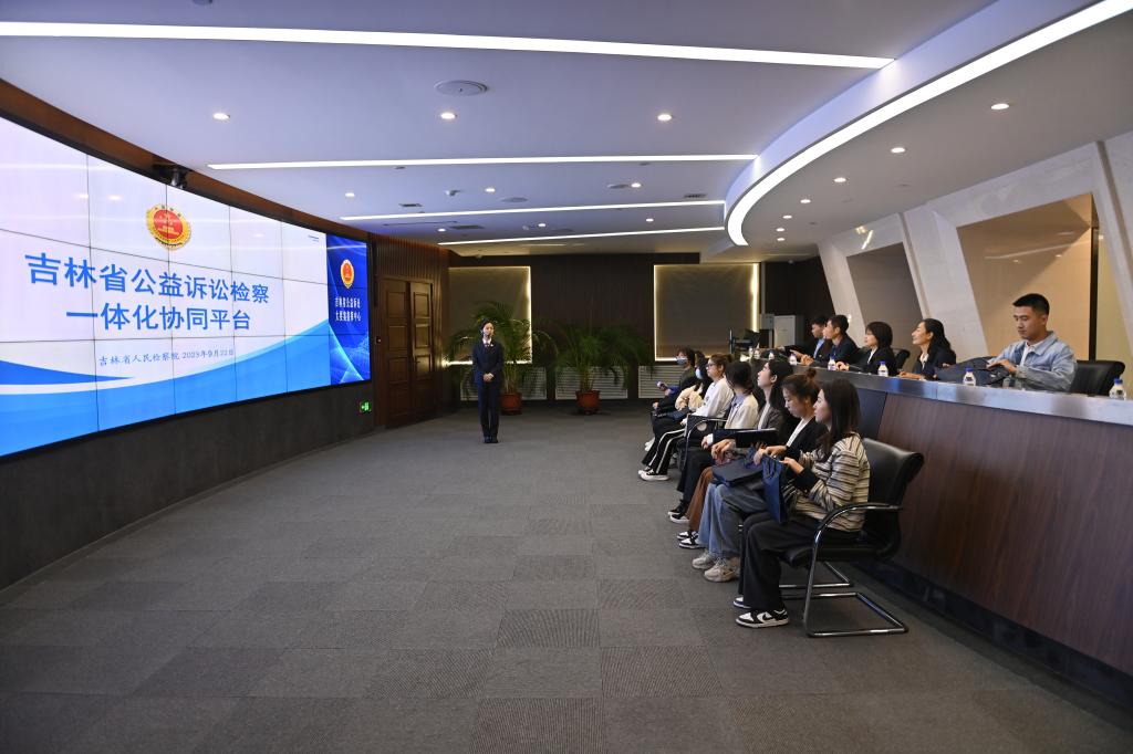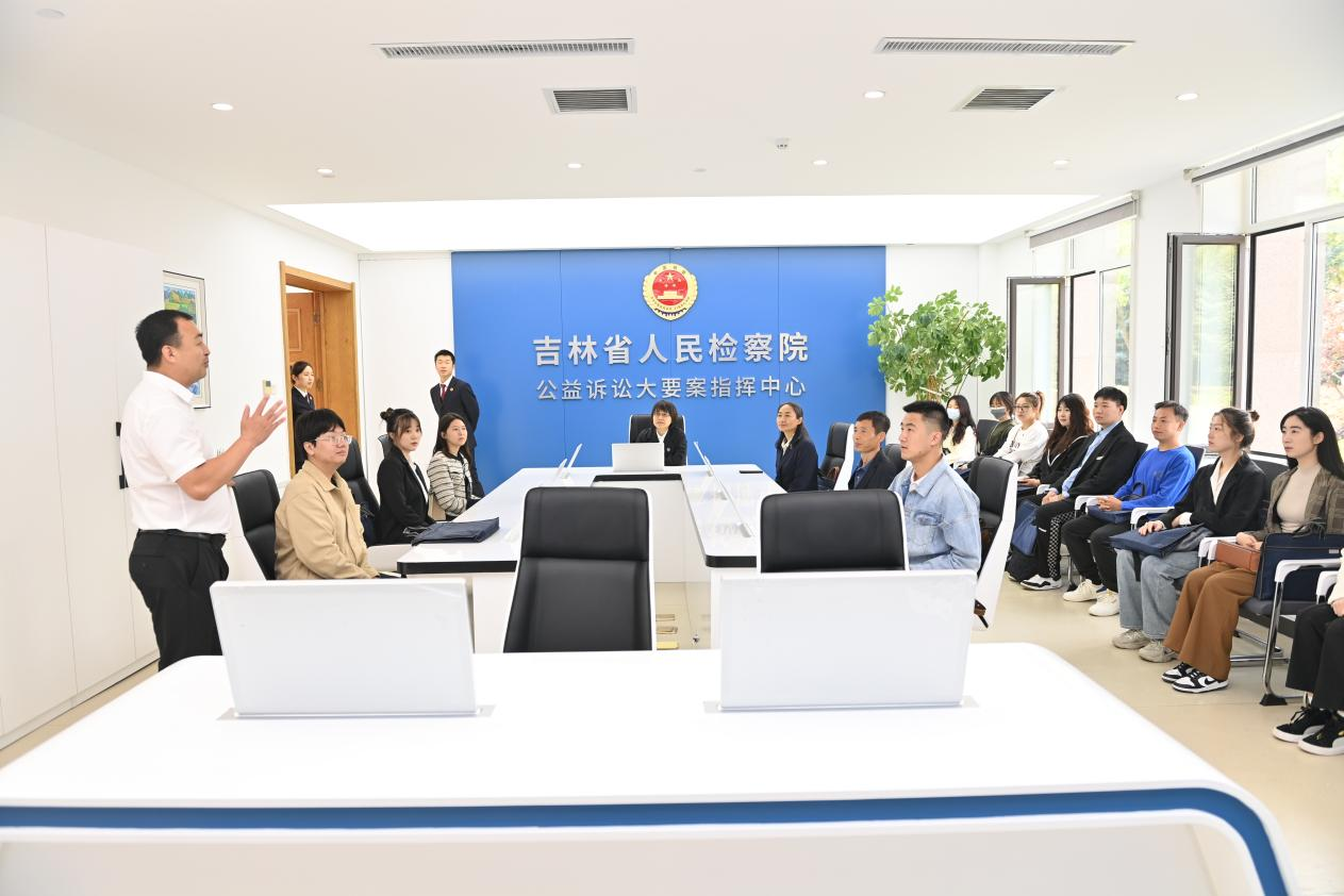 师生们在检察院第八检察部刘宏宇主任等检察官的引领下,参观了数字展馆、吉林省公益诉讼检察一体化协同平台、公益诉讼大要案指挥中心等,了解了人民检察的发展历程,公益诉讼检察制度的内涵以及吉林省人民检察院公益诉讼工作的数量规模与质量效果,并就如何更好推进公益诉讼制度的发展展开座谈。