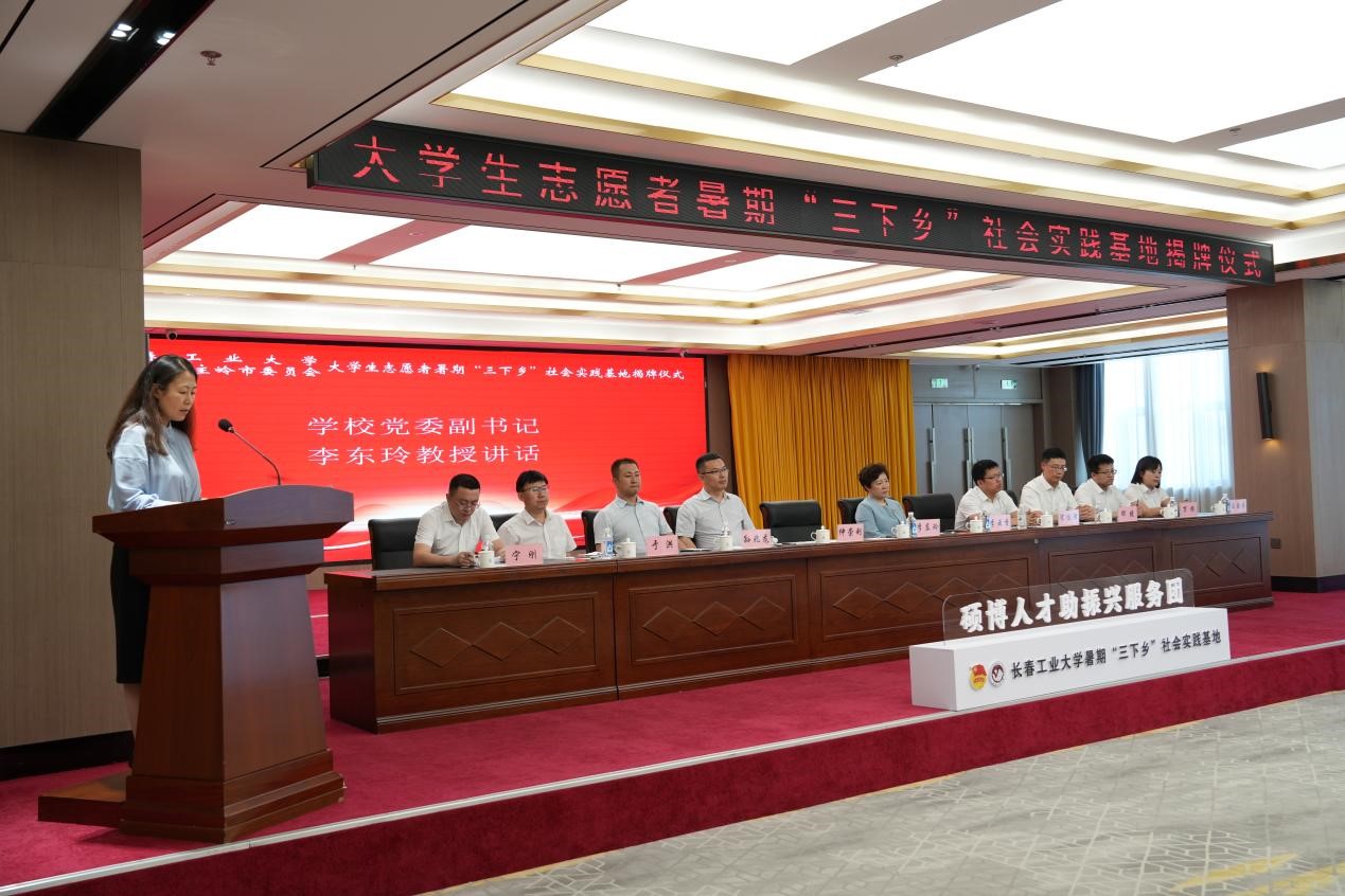 7月9日下午,校地共建大学生志愿者暑期“三下乡”社会实践基地揭牌仪式在当地举行。校党委副书记李东玲、公主岭市委副书记李云香出席仪式,公主岭团市委、教育局及辖区各街道有关人员,我校党委学生工作部、党委研究生工作部、团委及beat365中文官方网站负责同志,部分专职团干部,实践团队大学生志愿者参加活动。