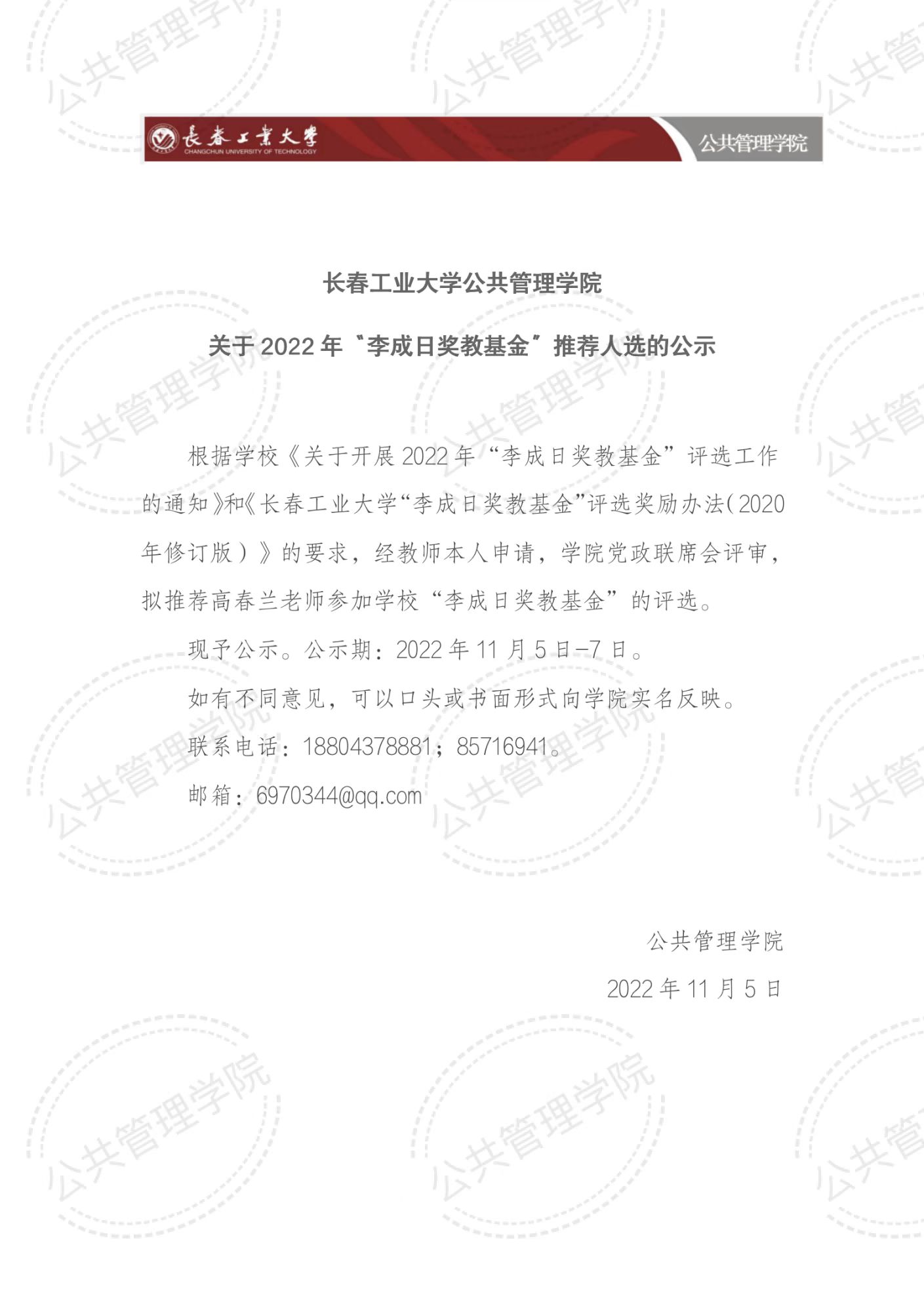 关于2022年“李成日奖教基金”推荐人选的公示
