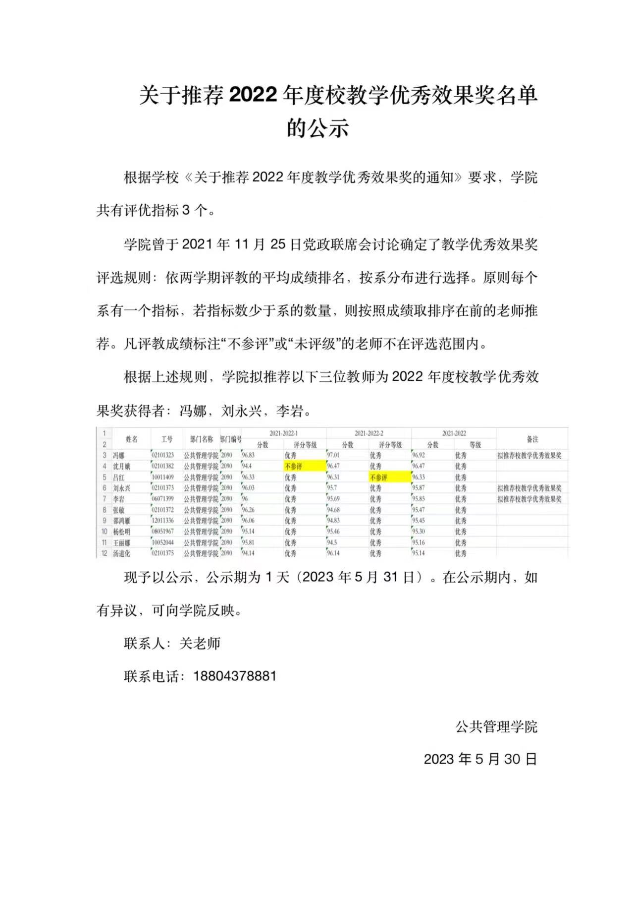 beat365中文官方网站关于推荐2022年度校教学优秀效果奖名单公示